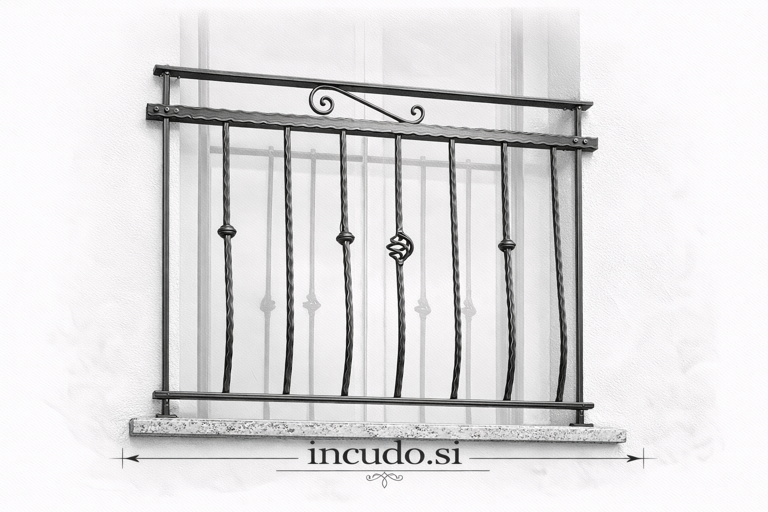 Kovana ograja za francoski balkon. Cena za tekoči meter.